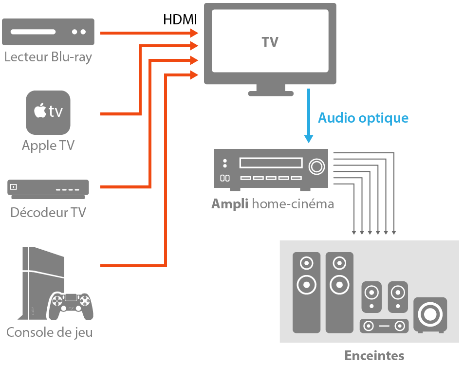 Comment brancher des enceintes sur TV [Résolu]. Mon téléviseur a une belle image mais un son très médiocre ! Comment améliorer le son de sa TV ? Installer facilement et efficacement des haut-parleurs Les ports HDMI que vous pouvez utiliser sont parfois signalés par une mention ARC.Si ce n'est pas le cas, consultez le manuel ou les spécifications de votre produit pour vérifier si la fonctionnalité ARC est prise en charge.